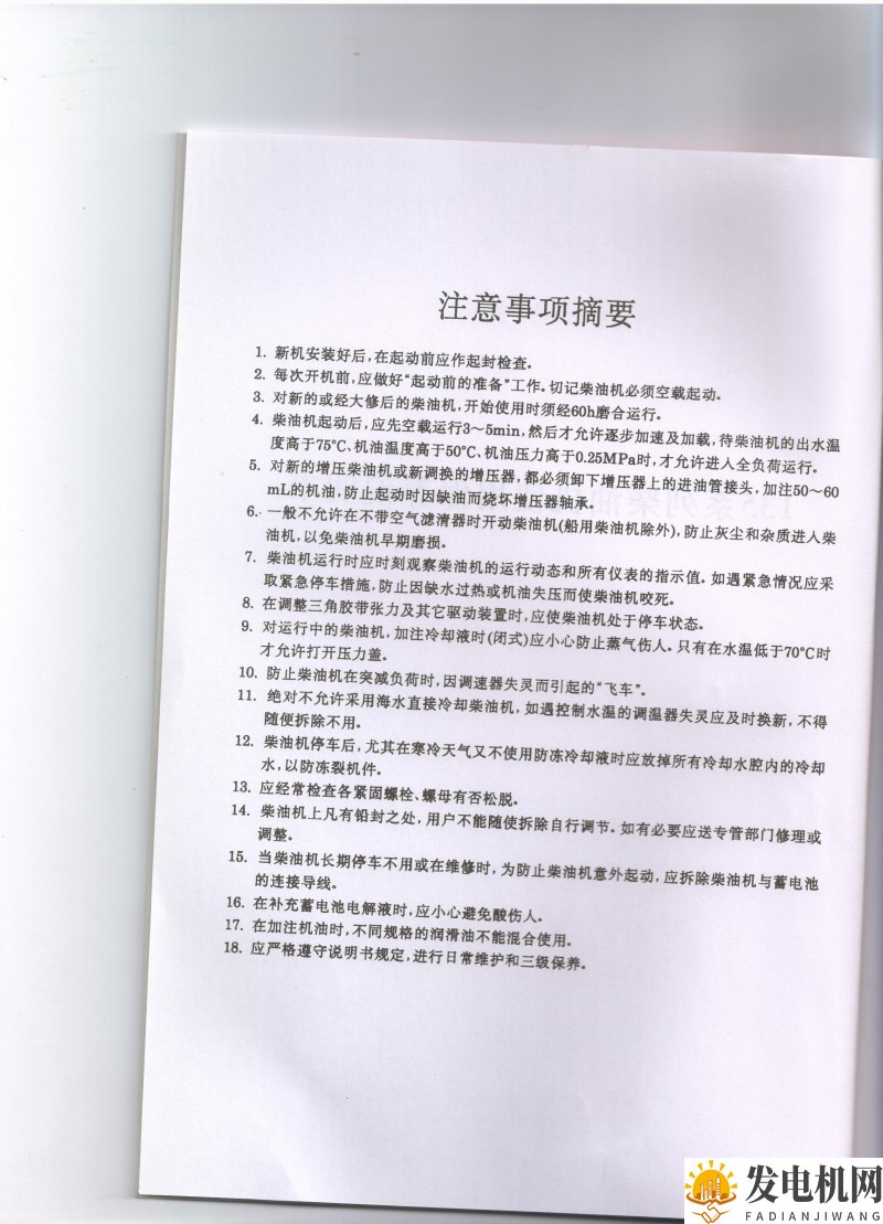 发电机组电站用上柴135系列柴油机使用保养说明书