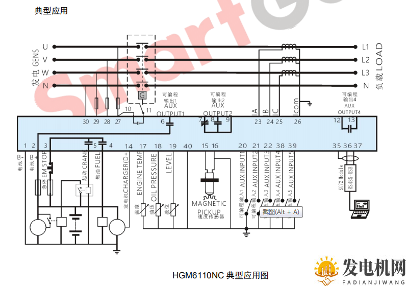 众智HGM6110NC柴油发电机控制器产品应用图纸